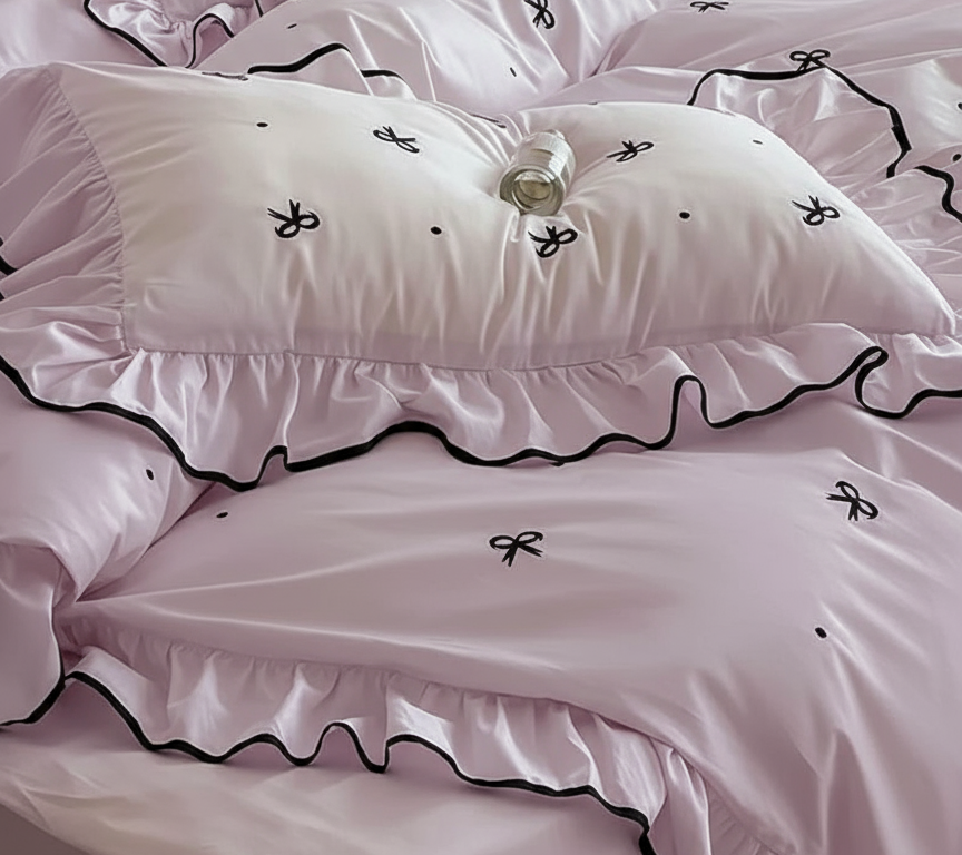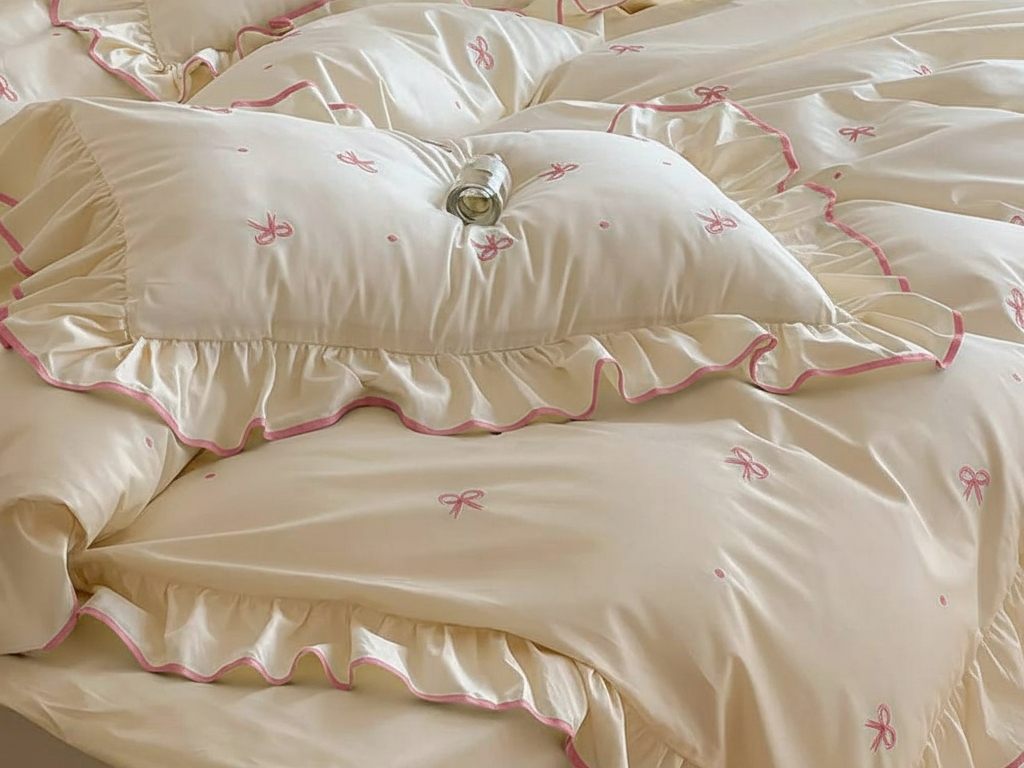 این ست زیبا با گلدوزی‌ و مغزی‌دوزی ظریف طرح پاپیون ترند و دور چین دار، گزینه‌ای شاد و خاص برای دکوراسیون اتاق خواب است. طراحی چشم‌نواز و رنگ‌های ملایم آن، حس تازگی و طراوت را به فضای شما می‌بخشد.