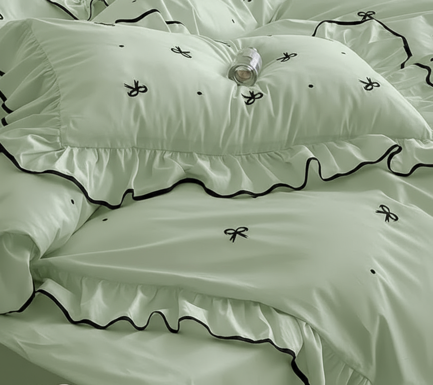 این ست زیبا با گلدوزی‌ و مغزی‌دوزی ظریف طرح پاپیون ترند و دور چین دار، گزینه‌ای شاد و خاص برای دکوراسیون اتاق خواب است. طراحی چشم‌نواز و رنگ‌های ملایم آن، حس تازگی و طراوت را به فضای شما می‌بخشد.