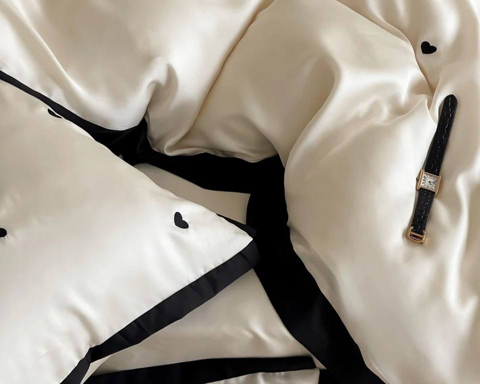 این ست خاص و چشم‌نواز، با گلدوزی‌های ظریف طرح قلب، انتخابی عالی برای افرادی‌ست که به دنبال زیبایی، کیفیت و سادگی در طراحی اتاق خواب هستند.