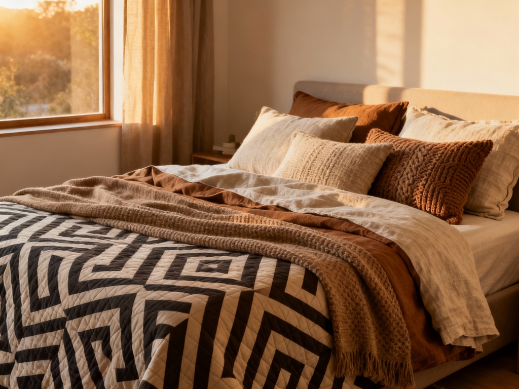 تصور کنید: یک پتوی تزئینی دارید که با طرح کاغذ دیواری یا فرش شما هماهنگ است، یا یک کوسن قهوهای که دقیقاً همرنگ چوب میز کنار تخت شماست. این لحظات ظریف از تکرار (چه از طریق رنگ، طرح یا بافت) به کالای خواب شما کمک میکند تا با سایر عناصر اتاق هماهنگ شود.