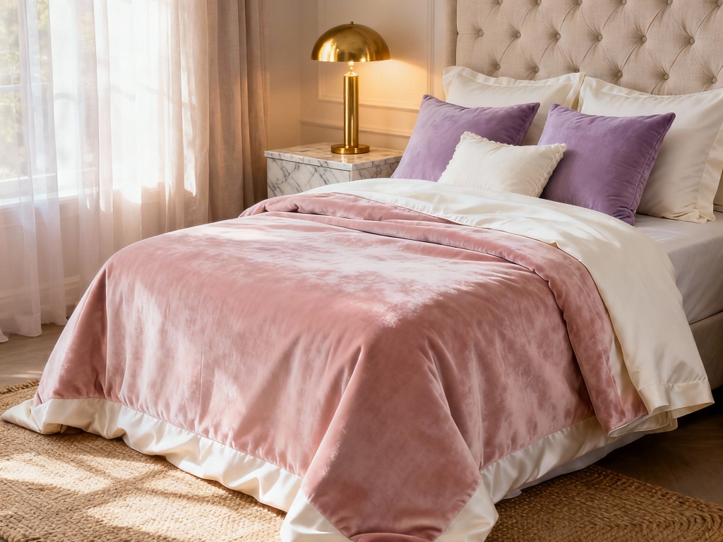 مخمل (Velvet): پارچههایی مانند مخمل لوکس، بافتی نرم، لطیف و بسیار گرم دارند. ستهای روتختی مخمل، علاوه بر ایجاد حس گرما، ظاهری شیک و مجلل به اتاق خواب شما میبخشند. ست روتختی پنبهدوزی مخمل لوکس آرامین گزینهای عالی برای شبهای سرد زمستان است که لطافت و گرما را همزمان به ارمغان میآورد.